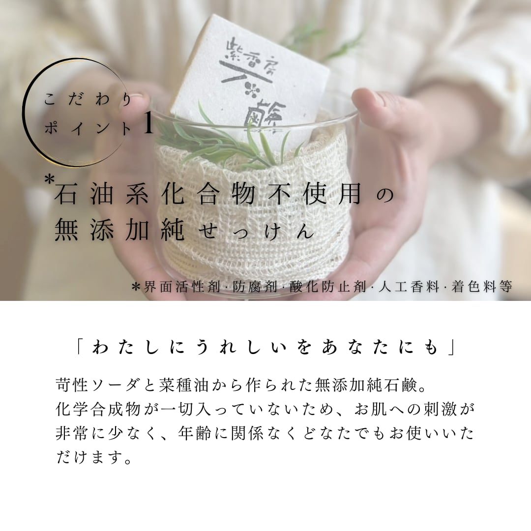 紫根配合、岩手の自然素材で手作り。全身洗える無添加石鹸です。