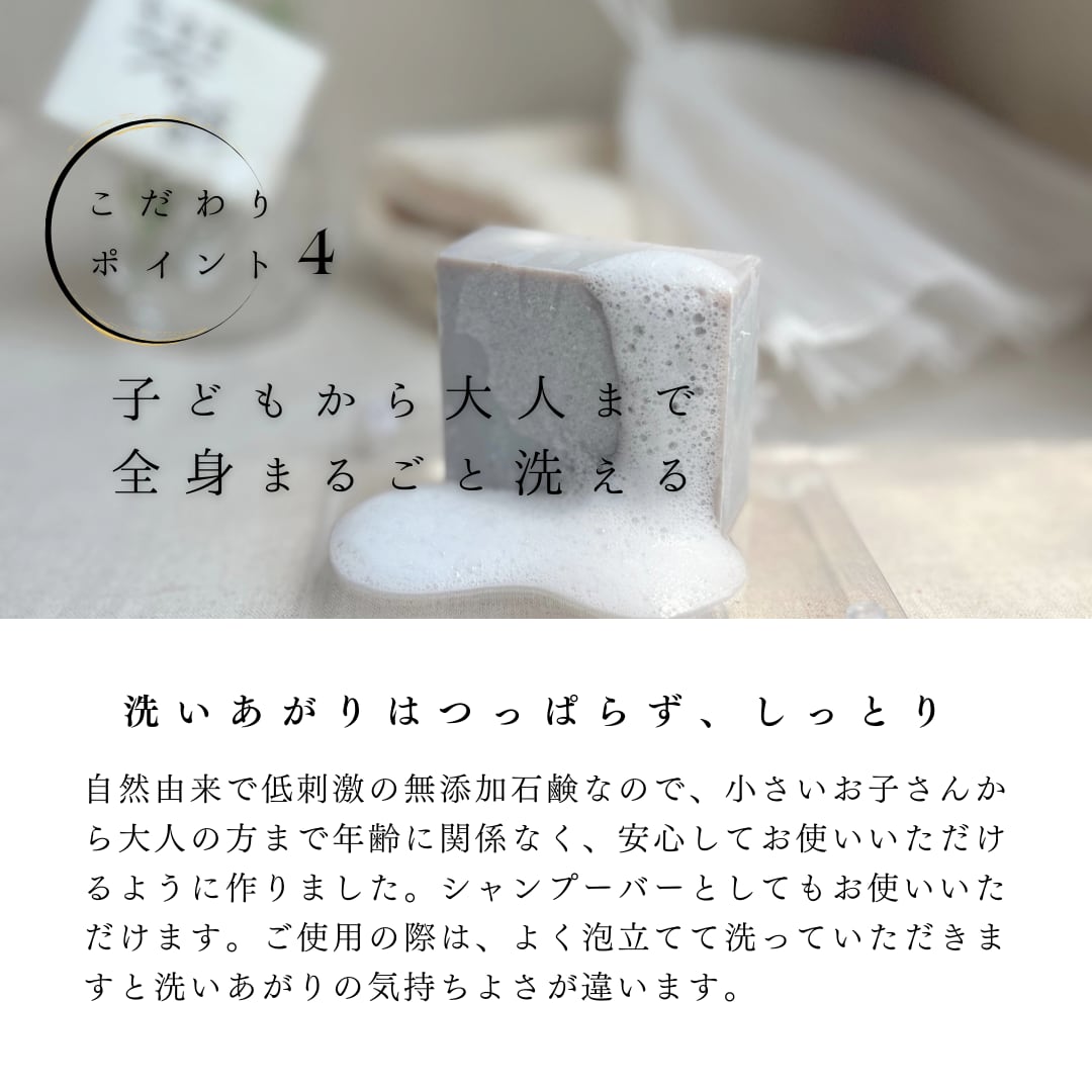 紫根配合、岩手の自然素材で手作り。全身洗える無添加石鹸です。